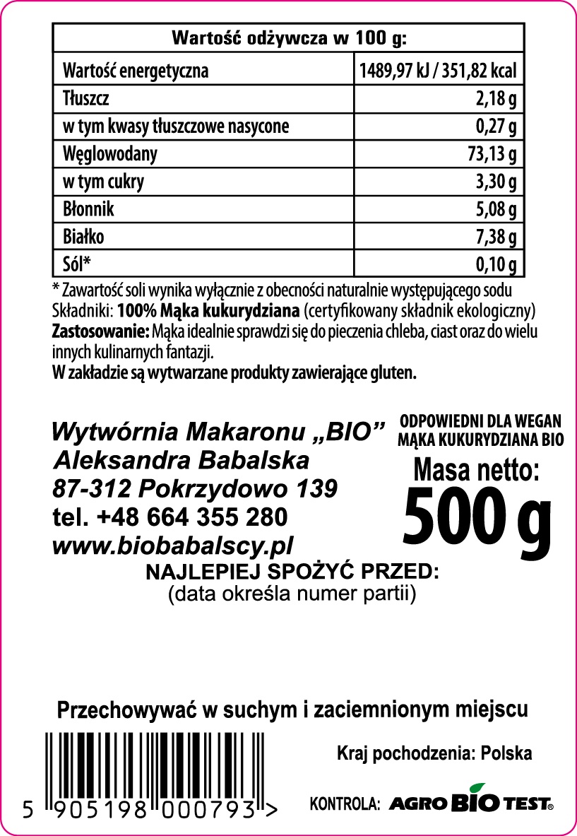 Mąka kukurydziana typ 1850 BIO 500g
