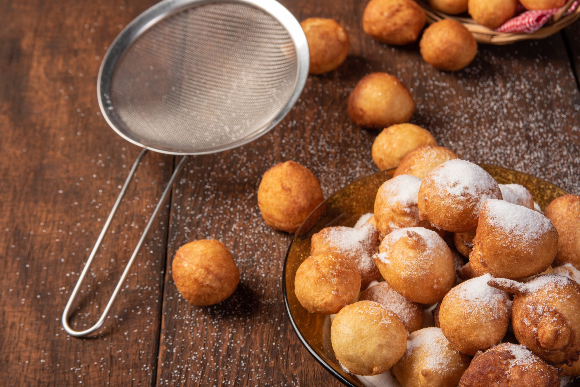 Odsącz na ręczniku papierowym i oprósz cukrem pudrem.